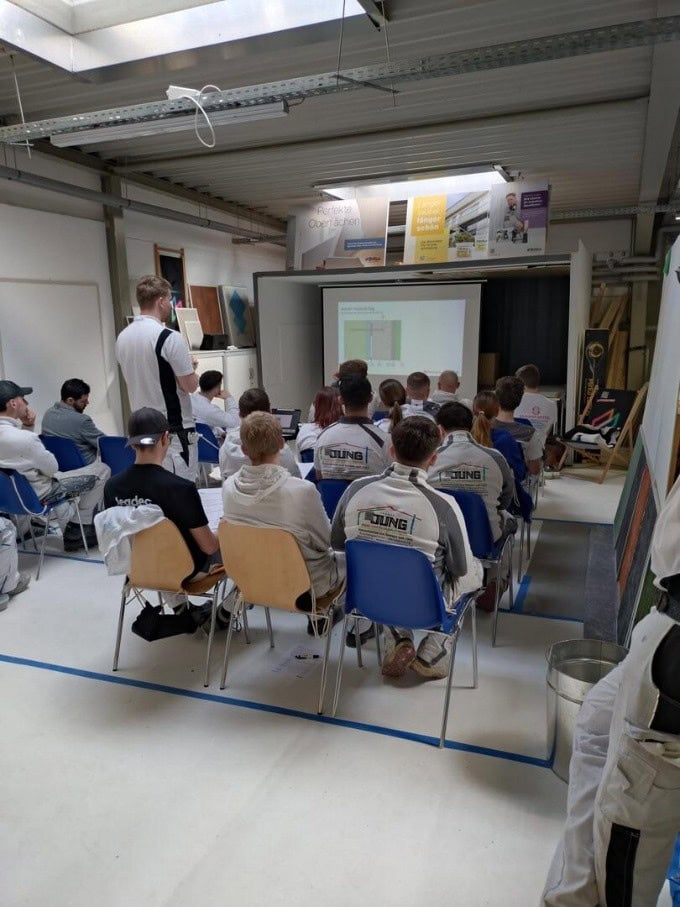 Die Kombination aus kompakter Theorie und angeleiteter Praxis kam bei den Auszubildenden gut an: Der direkte Wechsel vom Seminarraum an die Musterwand machte sofort sichtbar, wie sich fachliche Vorgaben in handwerkliche Qualität übersetzen lassen. So wurde der Tag bei Brillux für die angehenden Fachkräfte zur Brücke zwischen Berufsschule und Baustelle – mit konkreten Lernerfahrungen, die sich beim nächsten Einsatz auf der realen Fassade auszahlen dürften.