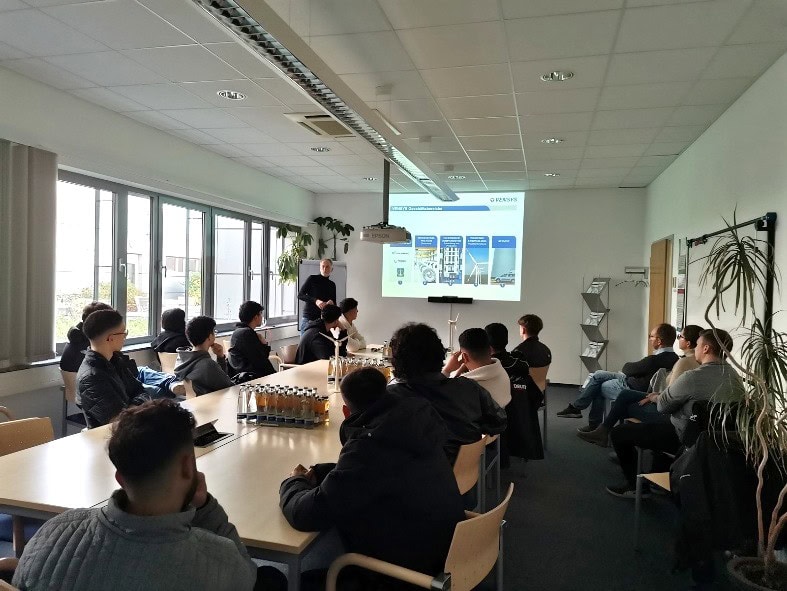 Zu Beginn erhielten die Schülerinnen und Schüler eine informative Einführung in die Bedeutung erneuerbarer Energien und deren Rolle im Zusammenhang mit der Klimawende. Anschließend bot eine Führung durch die Produktionshalle interessante Einblicke in den technischen Ablauf beim Bau getriebeloser Windenergieanlagen.