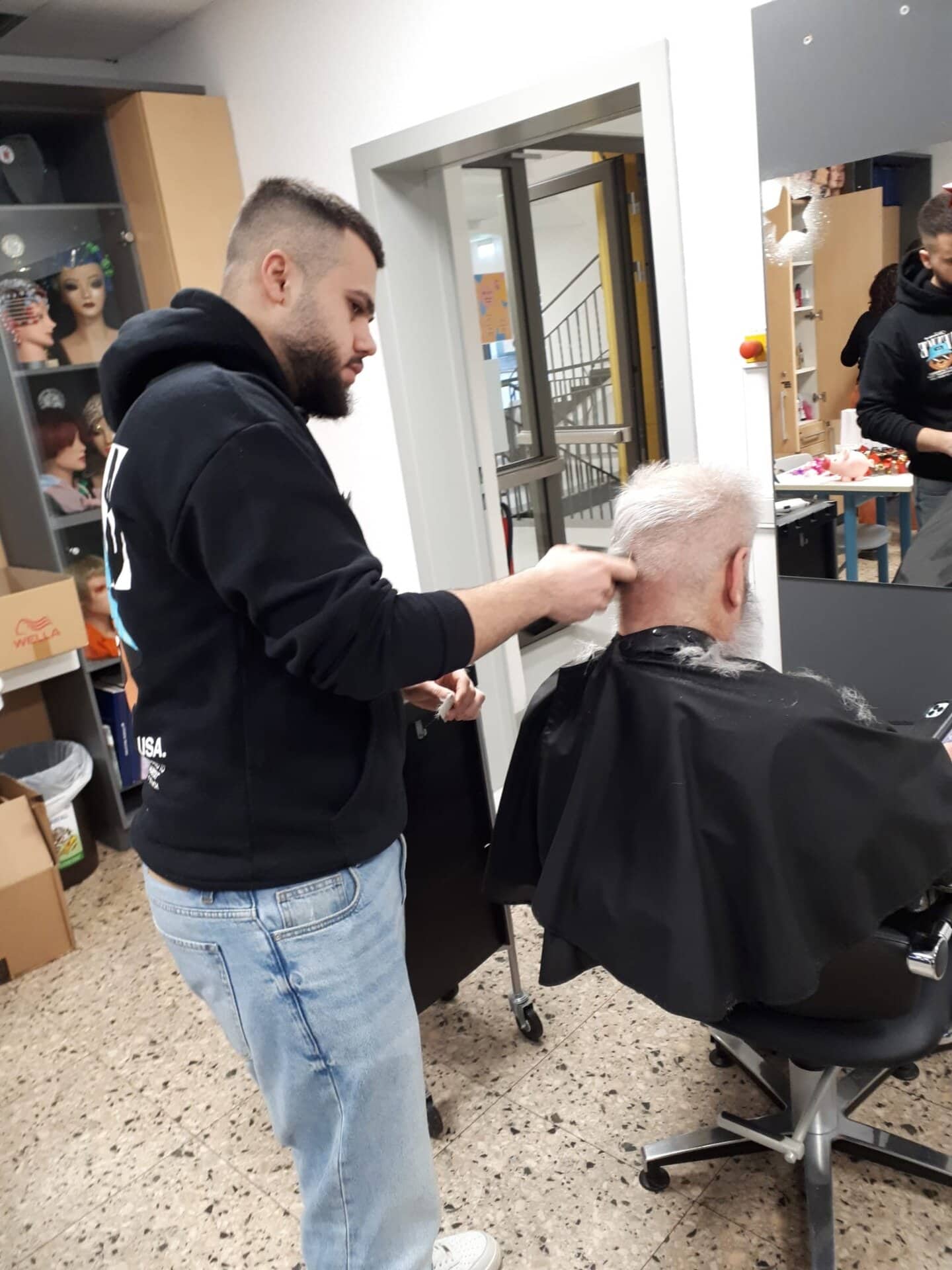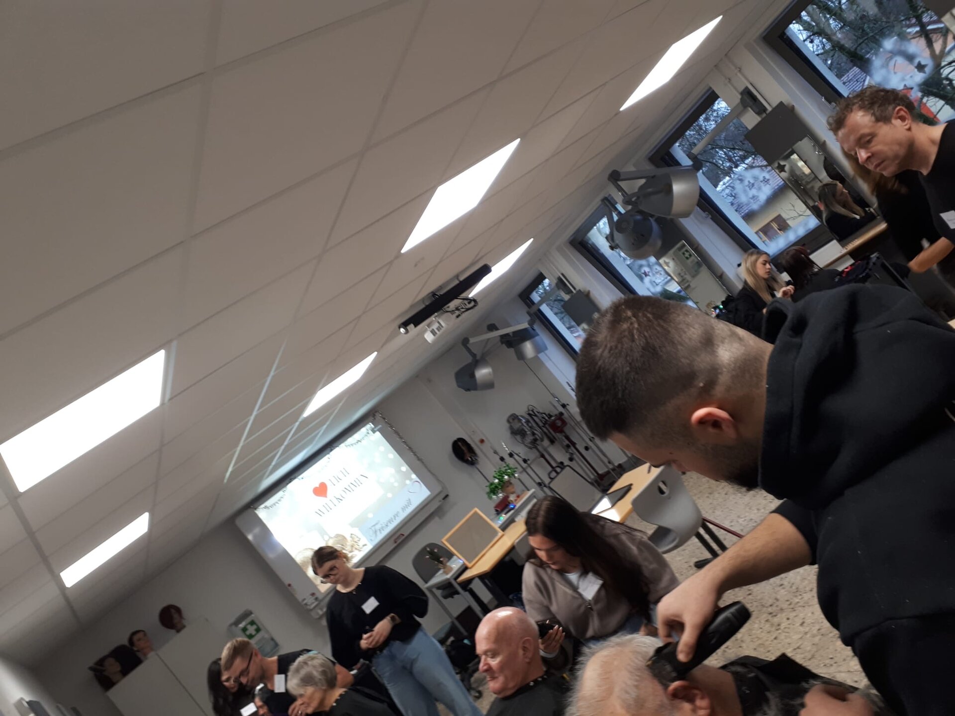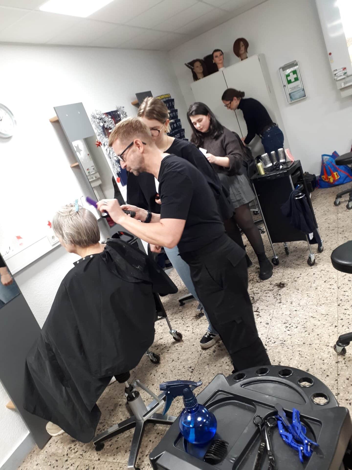 Am 08. Dezember war es dann soweit: An diesem Tag durften wir zahlreiche Besucherinnen und Besucher der Wärmestubb und der Tafel an unserer Schule begrüßen. Sie wurden von unseren Friseurazubis und dem Friseurteam mit einem frischen Haarschnitt verwöhnt, den sie sich sonst leider nicht leisten können.