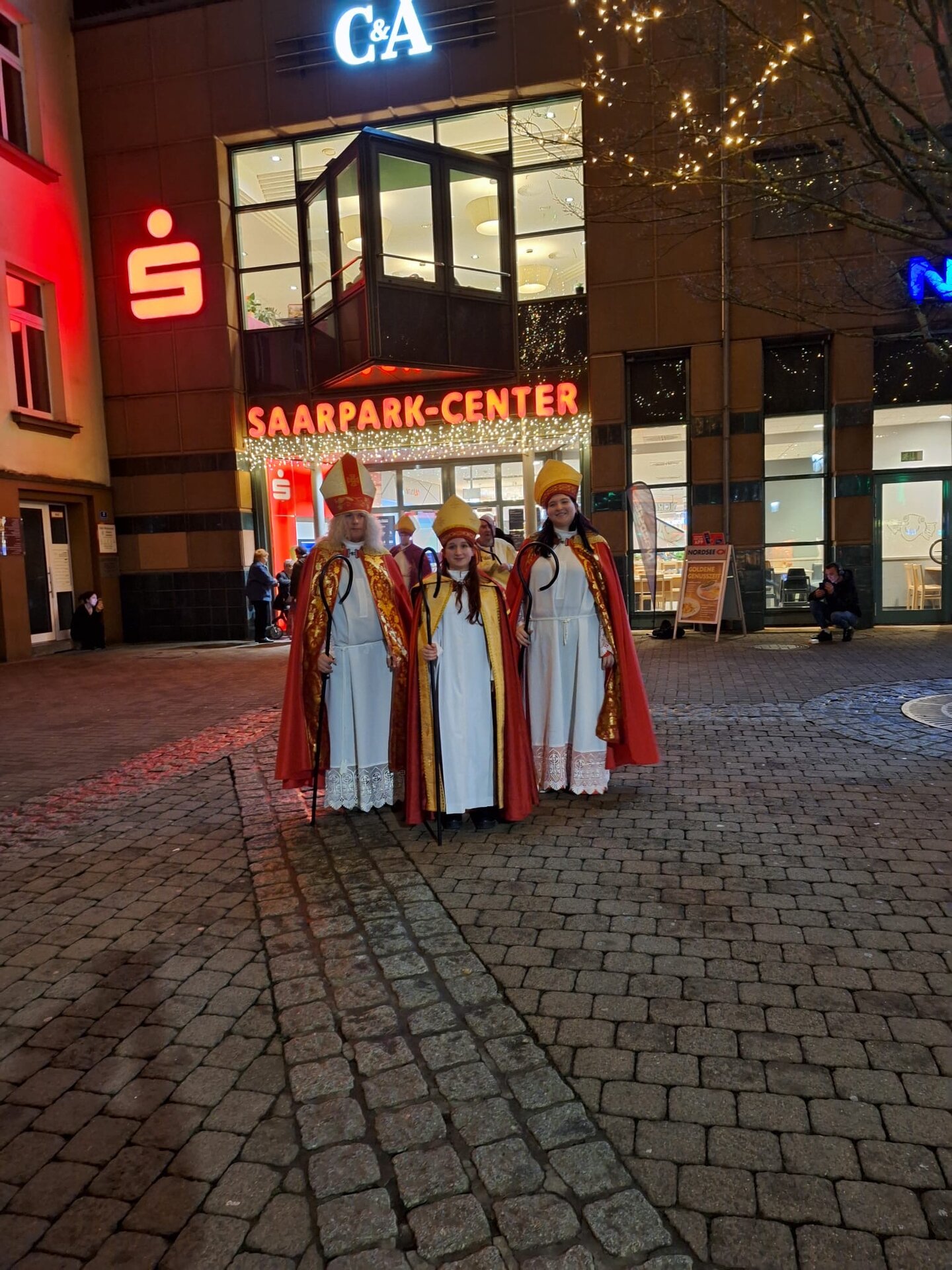Mit dem Lied „Sei gegrüßt lieber Nikolaus“ begrüßten zahlreiche Kinder mit leuchtenden Augen die Nikoläuse im Momentum. Von dort ging es dann gemeinsam singend ins Saarparkcenter.